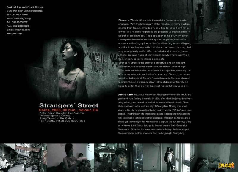 2001年在广州、湖南拍摄87分钟剧情片《客村街》,并获邀第26届法国南特三大洲国际电影节、香港国际电影节等参展。